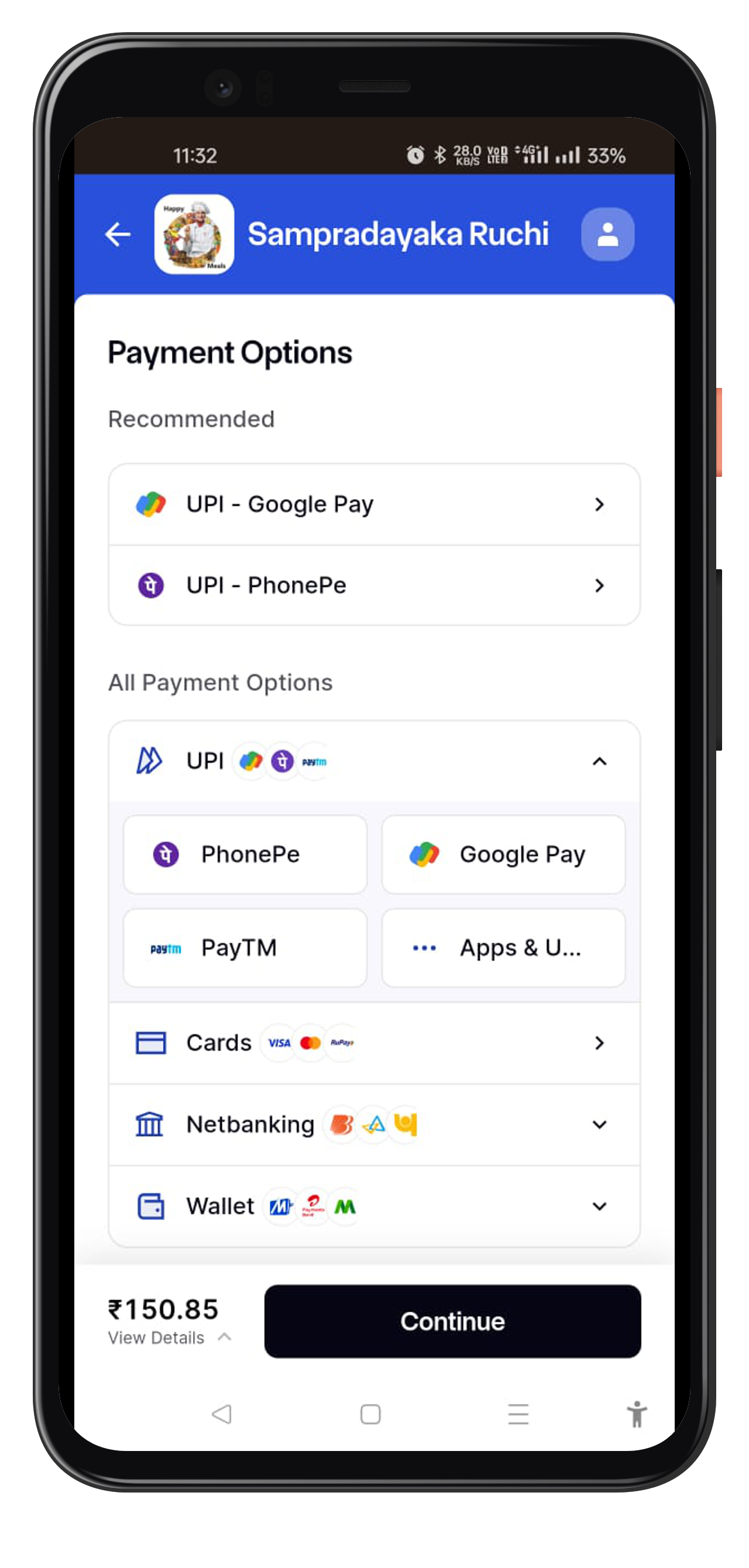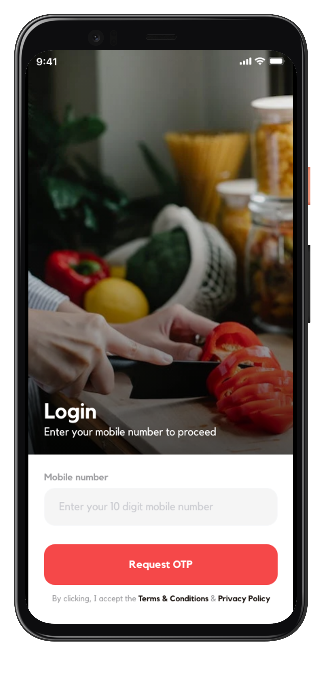 Access the full range of features on the food delivery platform by either signing up via email or social media login.