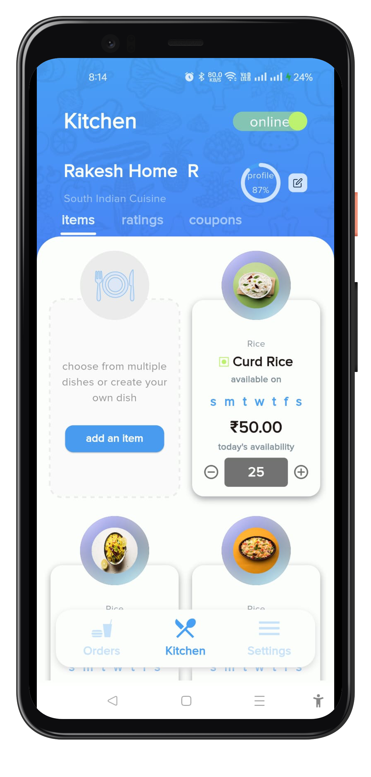Add your own menu to the Happyomeals app with dishes from any cuisine you love.